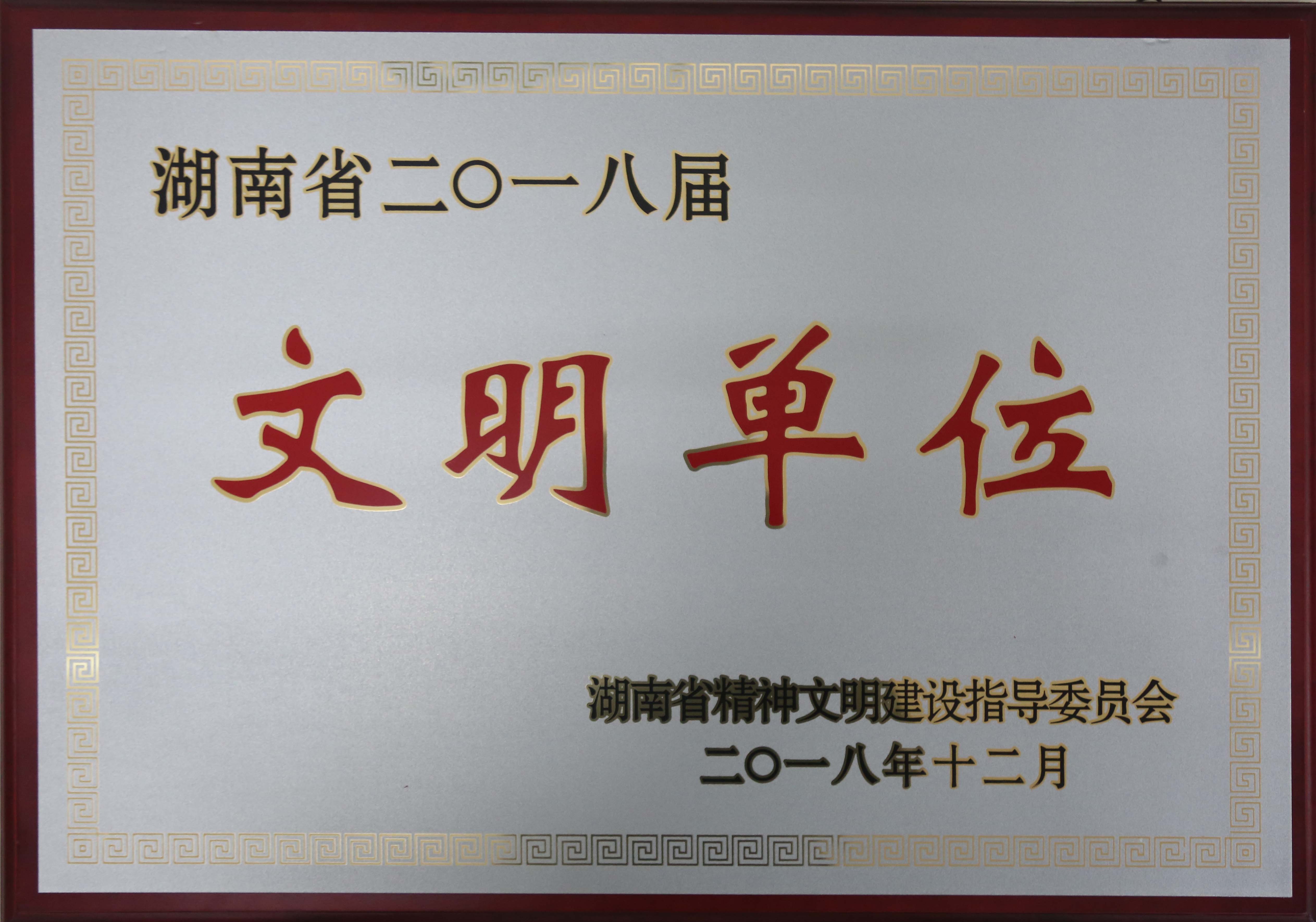 2018年12月被湖南省精神文明建设指导委员会评为“湖南省二〇一八届文明单位”